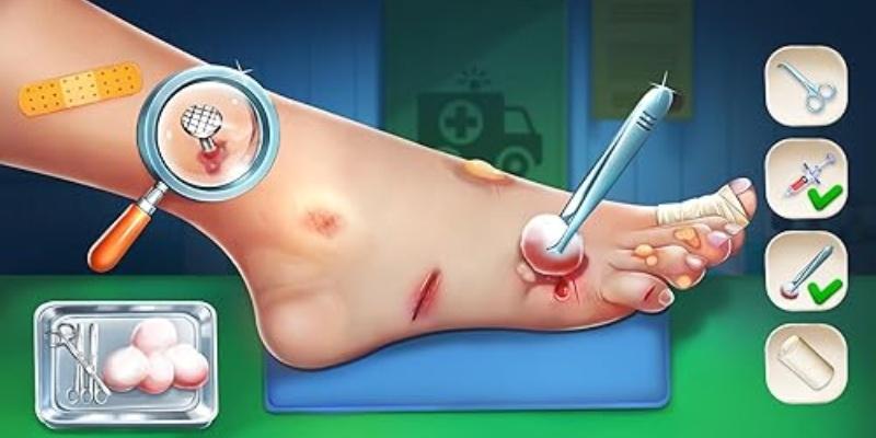 Step 1: Open Foot Clinic - ASMR Feet Care and select your first patient. Begin with easier treatments like cleaning or trimming nails, gradually moving to slightly more complex procedures as you gain confidence.